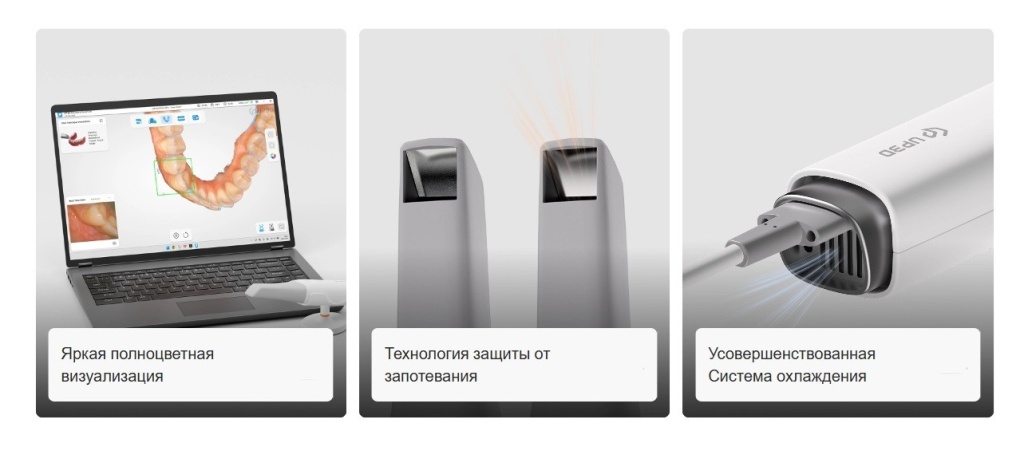 Глубина сканирования 22 мм и технология ИИ позволяют удалять лишние данные (щёки, язык), повышая качество результата.