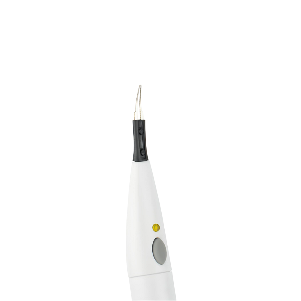 Это беспроводное изделие со сменными режущими насадками предназначено для быстрого, точного и безопасного удаления кончика гуттаперчевого штифта. Петля на режущем наконечнике обеспечивает легкий доступ к полости и захватывает лишнюю гуттаперчу точно в отверстии канала и точно разрезает ее, что позволяет избежать непреднамеренного расшатывания наполнителя. Насадки стерилизуются для дальнейшего многократного использования. Уровень заряда батареи позволяет использовать изделие до 80 раз.