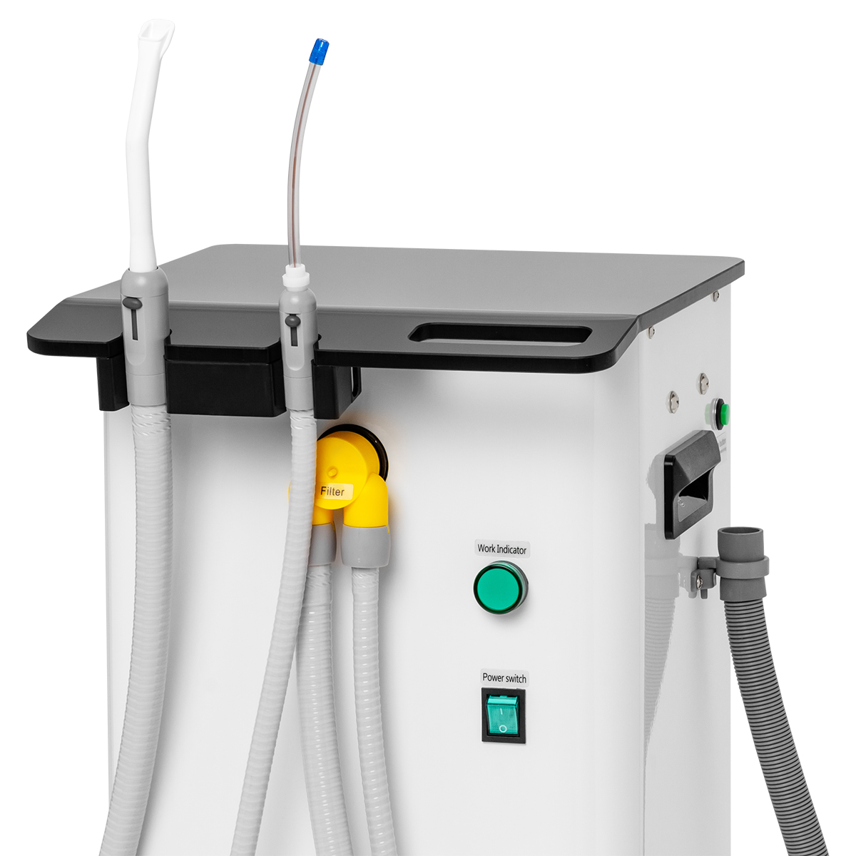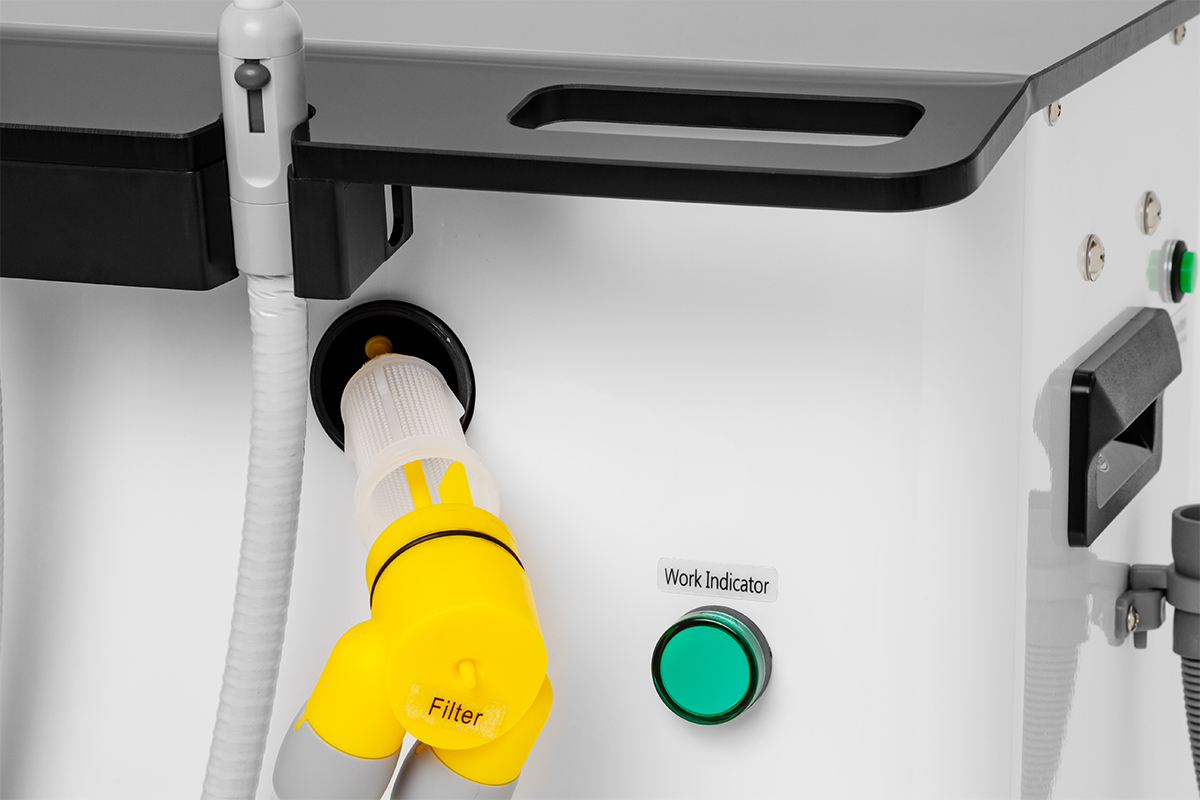 Аспирационная система устраняет аэрозоль, снижая риск перекрёстного инфицирования и делая лечение спокойным для пациента и врача.