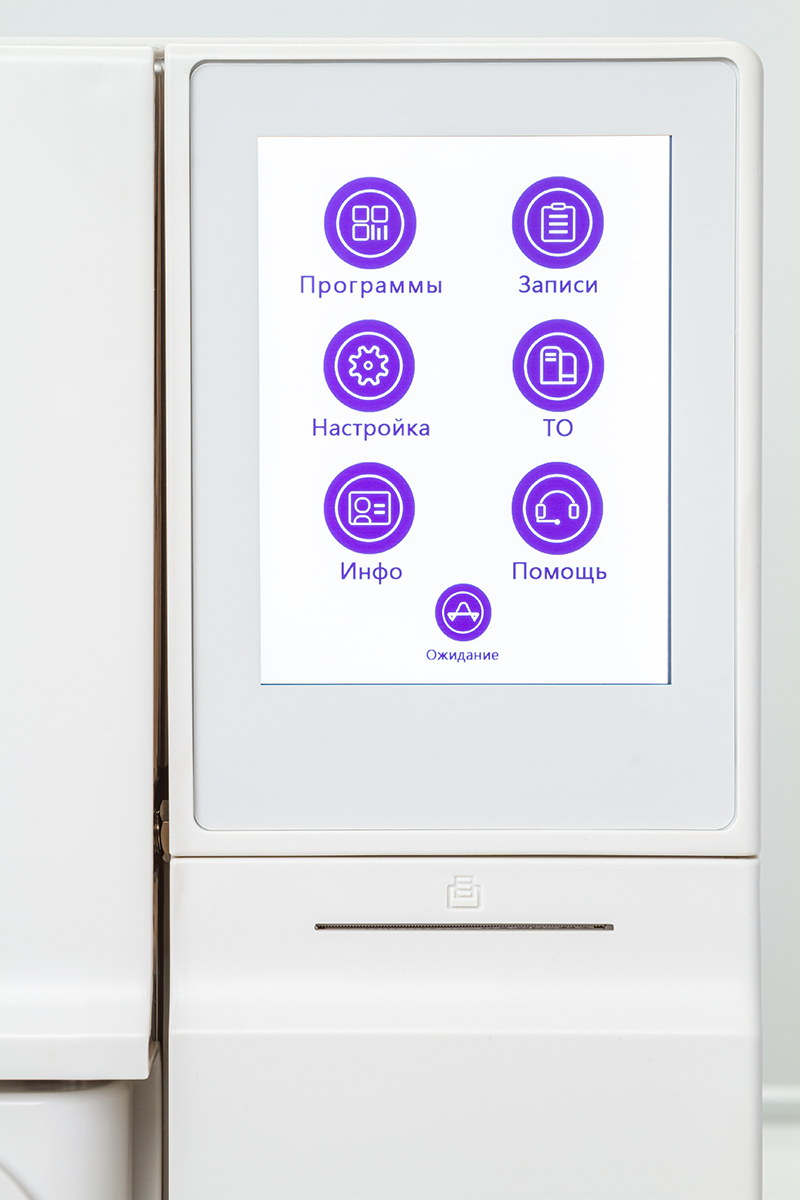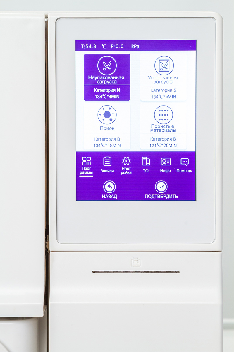 Большой LCD дисплей размером 81x101мм позволяет полностью отслеживать процесс стерилизации и получать подсказки в режиме on-line.