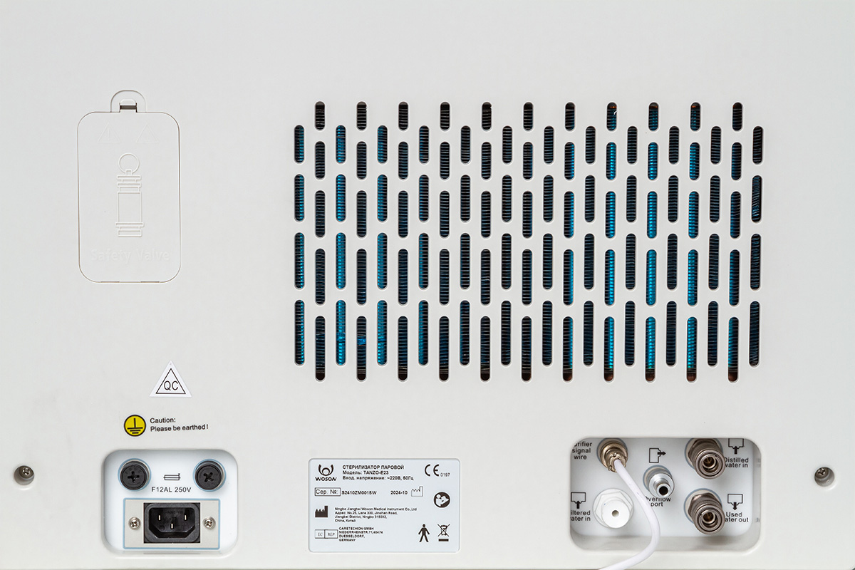 Автоклав не запустит работу если вода не будет соответствовать требуемому стандарту качества, защищая, таким образом, парогенератор и продлевая жизнь автоклаву.