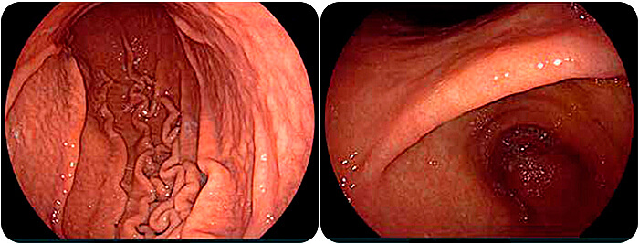 Режим двойного просмотра позволяет вывести на монитор обычный снимок и снимок с помощью технологии FICE. За счет одновременного показа двух картинок в разных форматах эндоскопическая диагностика становится более реалистичной. Видеопроцессор EPX-3500HD позволяет осуществлять запись на карту памяти как стандартного снимка, так и снимка в режиме FICE.