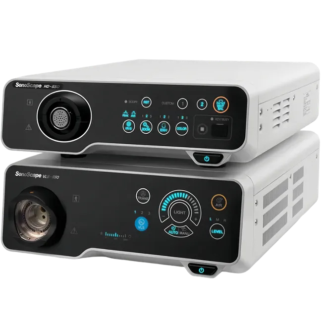Видеоэндоскопическая система HD–550 — долгожданная новинка от Sonoscape. Этот аппарат последнего поколения обладает высокой разрешающей способностью и усовершенствованной хромоэндоскопической системой, включая уникальные режимы визуализации, которые гарантируют получение высококачественной картинки и исключительную точность диагностики.