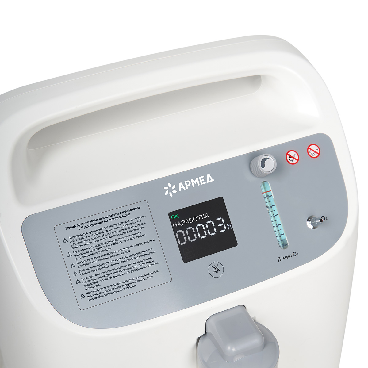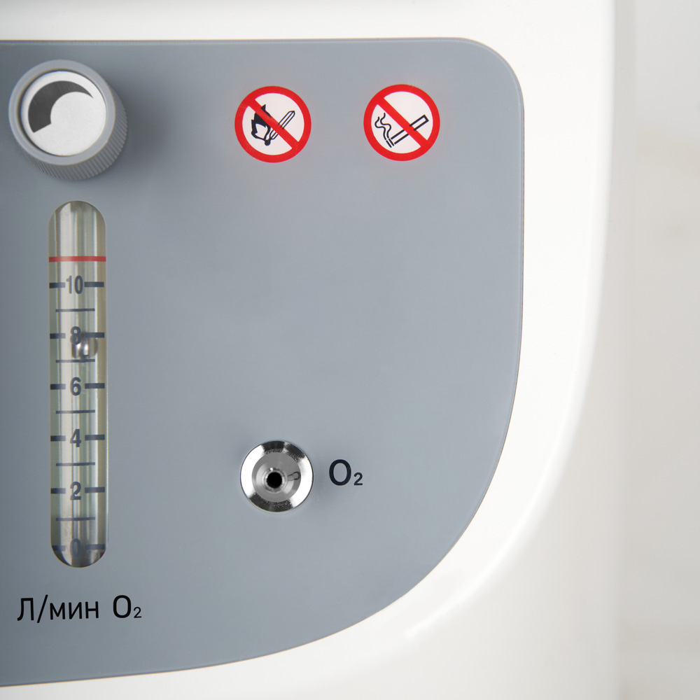 На цифровом дисплее с русскоязычным интерфейсом отображается отработанное время в часах, а также световые индикаторы, обозначающие статус работы прибора. По ним можно узнать, обеспечивается ли достаточная концентрация кислорода в кислородно-воздушной смеси, а также вовремя определить неисправности системы. Прибор включается и выключается одной кнопкой.