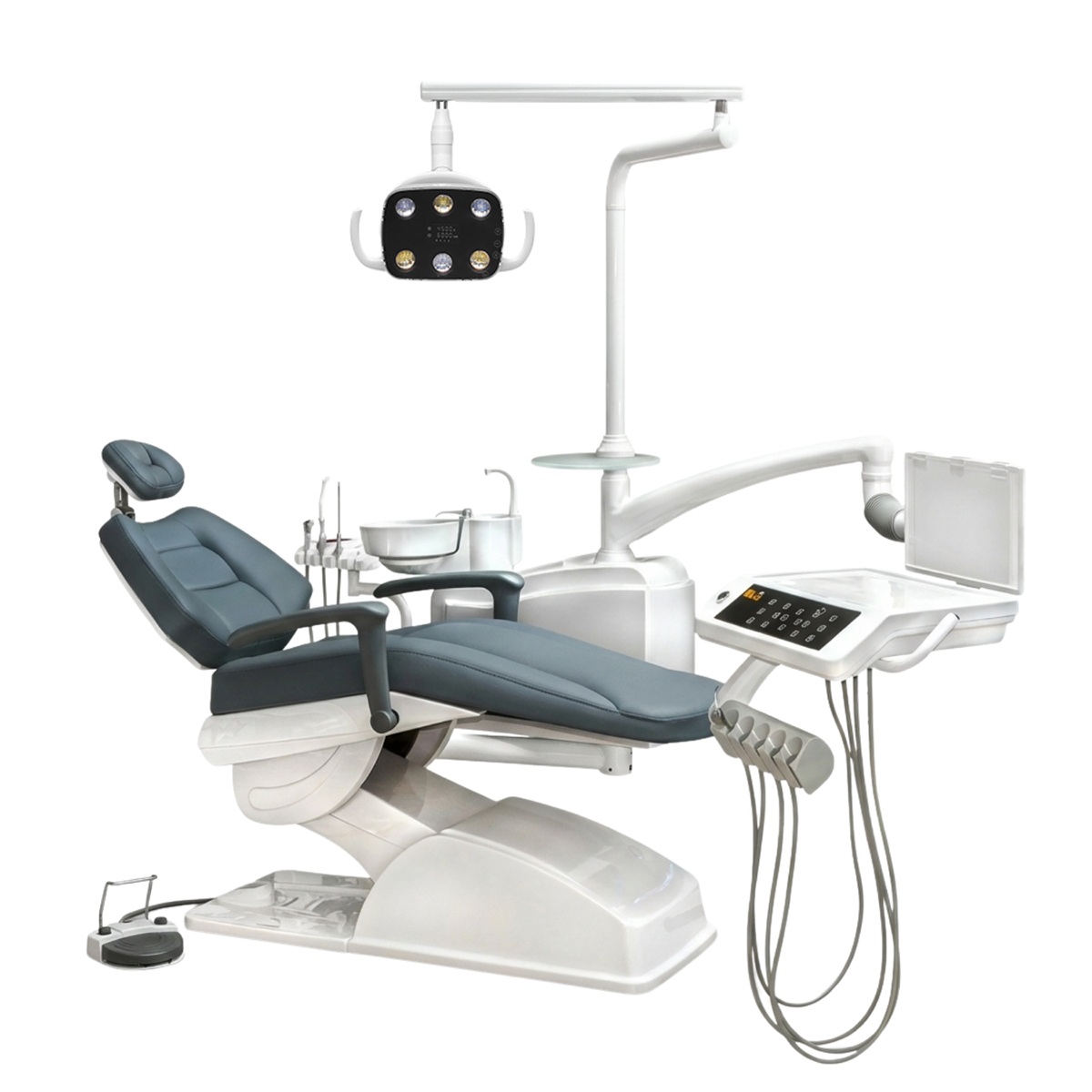 Комплект оборудования идеально подходит для терапевтического кабинета в любой стоматологической клинике. Есть возможность выбора цвета стоматологической установки, поэтому данный комплект впишется в любую цветовую гамму кабинета.