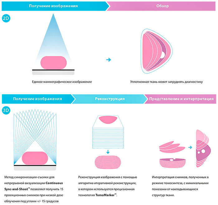 Функция томосинтеза предназначена для определения уплотнений и различных патологических изменений в тканях молочной железы.