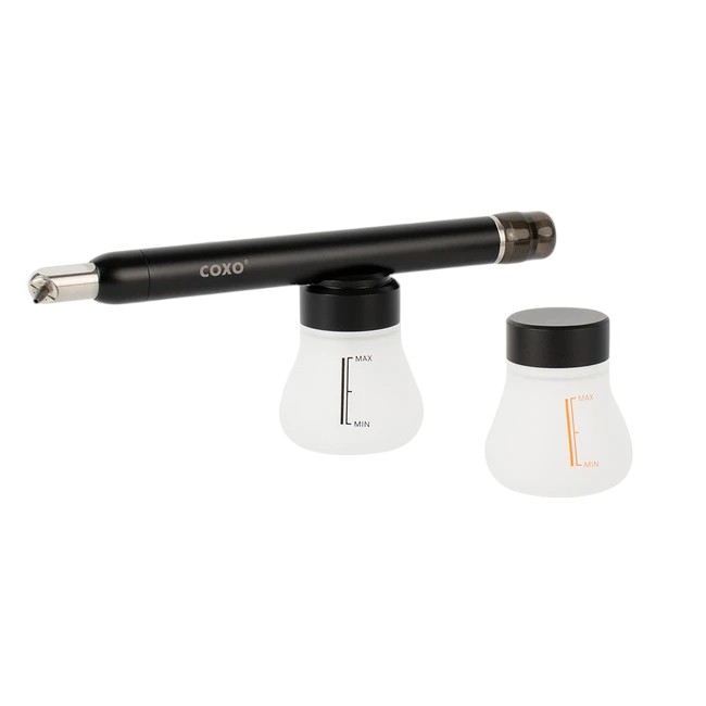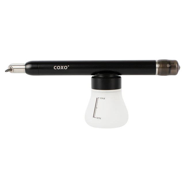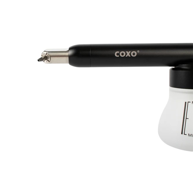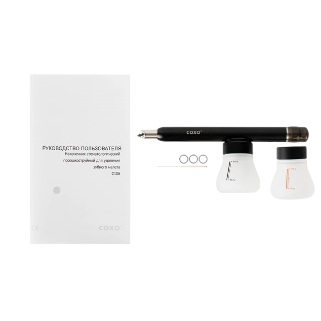 Важное преимущество аппарата COXO CA-1 – наличие прозрачного контейнера для порошка. Это позволяет контролировать расход материала и своевременно наполнять резервуар. Кроме того, емкость для порошка расположена снизу аппарата, благодаря чему она выполняет функцию ручки.