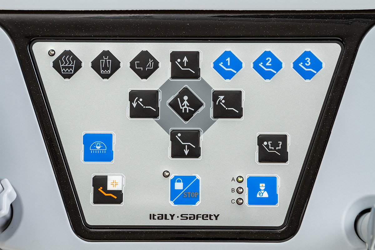 • Электрический передвижной стол врача, регулируемый по высоте с сенсорным блоком управления.
