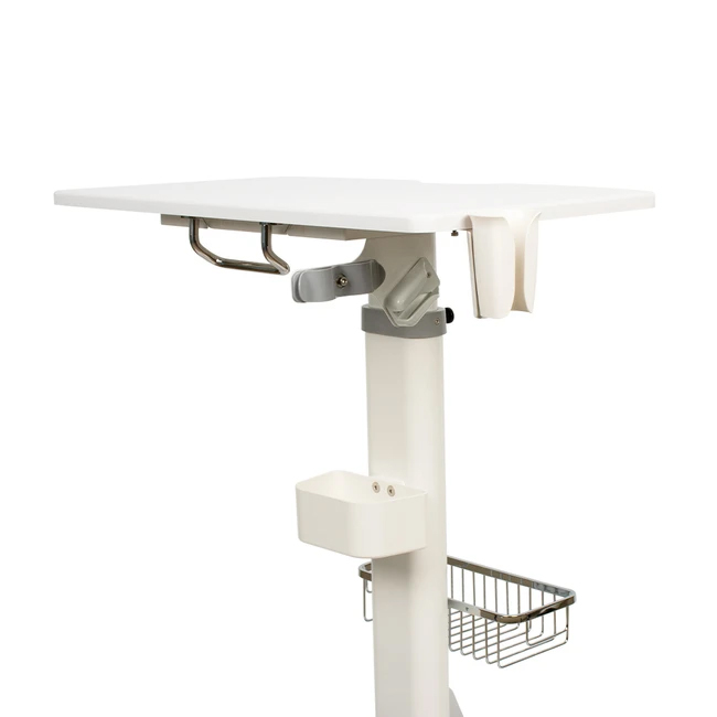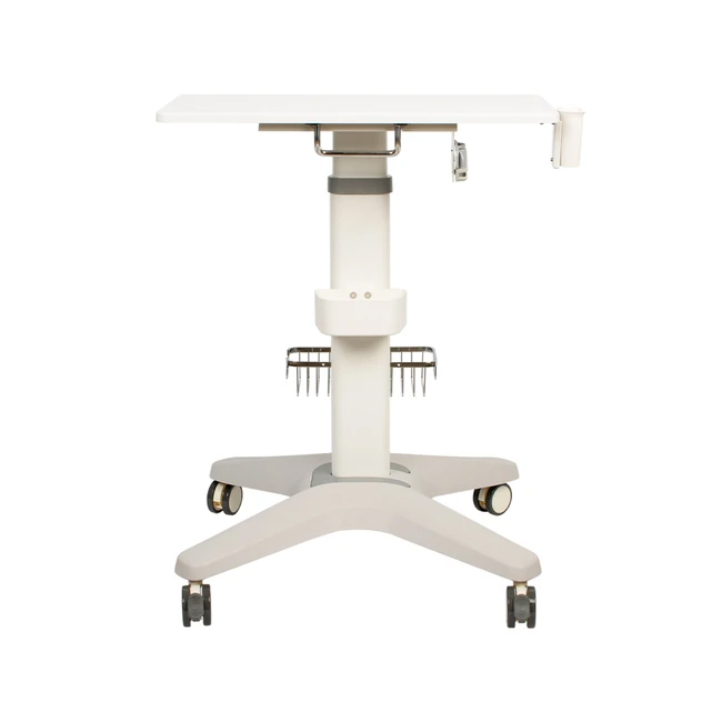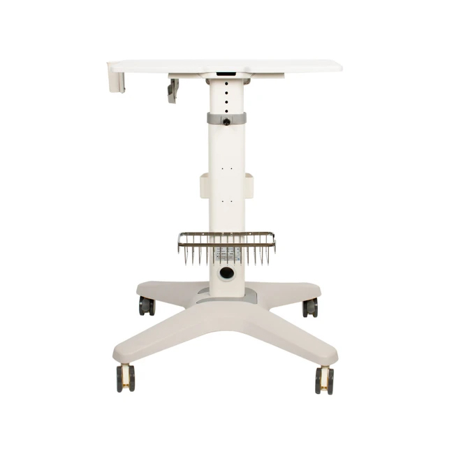 Обеспечивает эргономичное рабочее пространство благодаря продуманной конструкции. Идеально подходит для использования в стоматологических кабинетах, клиниках и лабораториях. Конструкция включает широкий столик для ноутбука или моноблока, телескопическую ножку для регулировки высоты, держатель для интраорального сканера и корзину для зарядного устройства.