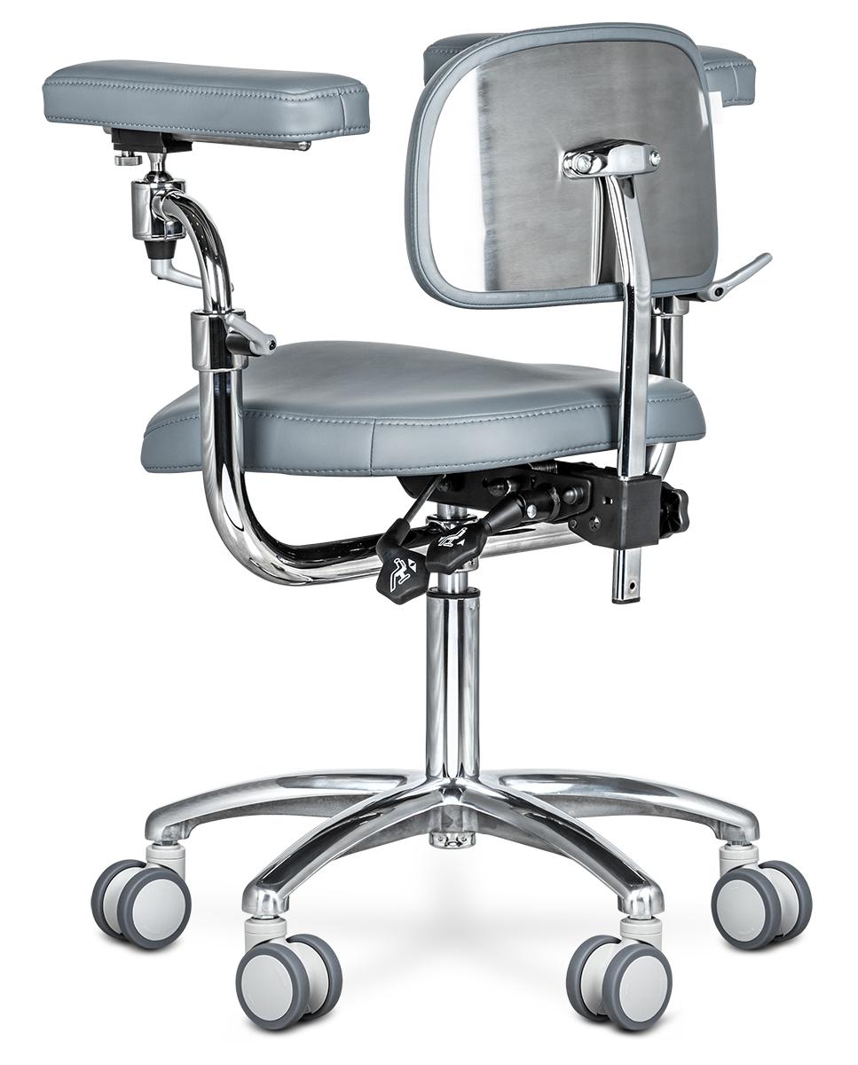 Механизм локтевого упора используется во всей линейке Elite позволяет комфортно настроить положение для человека с любой комплекцией, что увеличивает его универсальность, так как вы можете вести общую практику и работать за микроскопом.